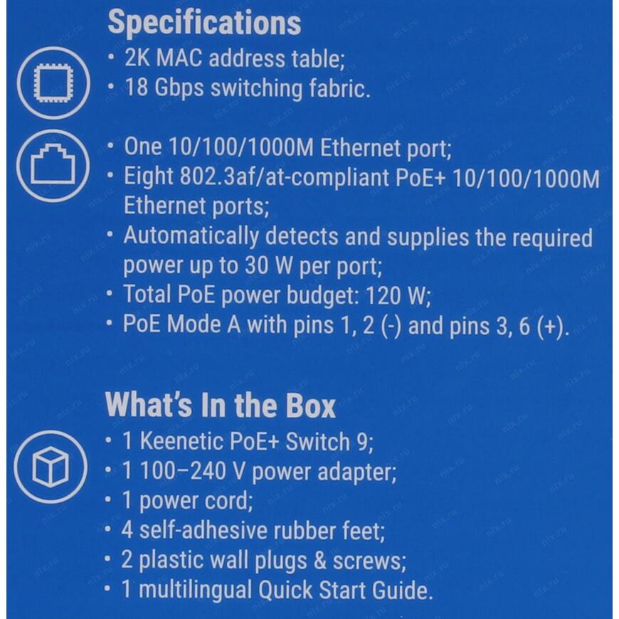 8 портов IEEE 802.3at (PoE+), IEEE 802.3af (PoE)