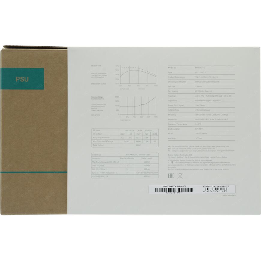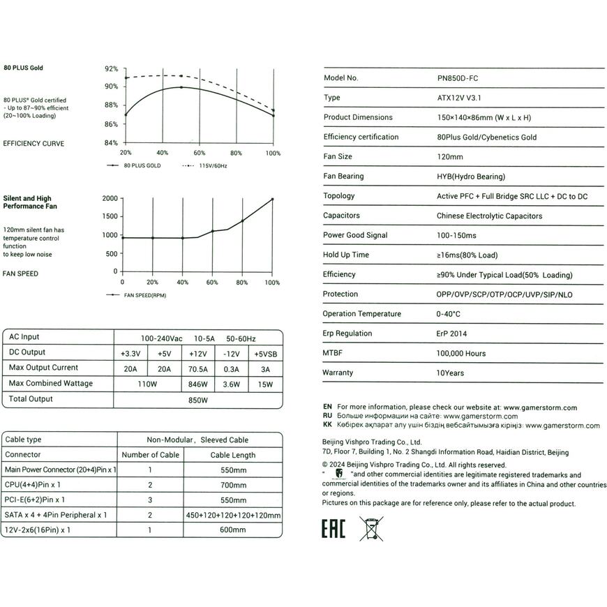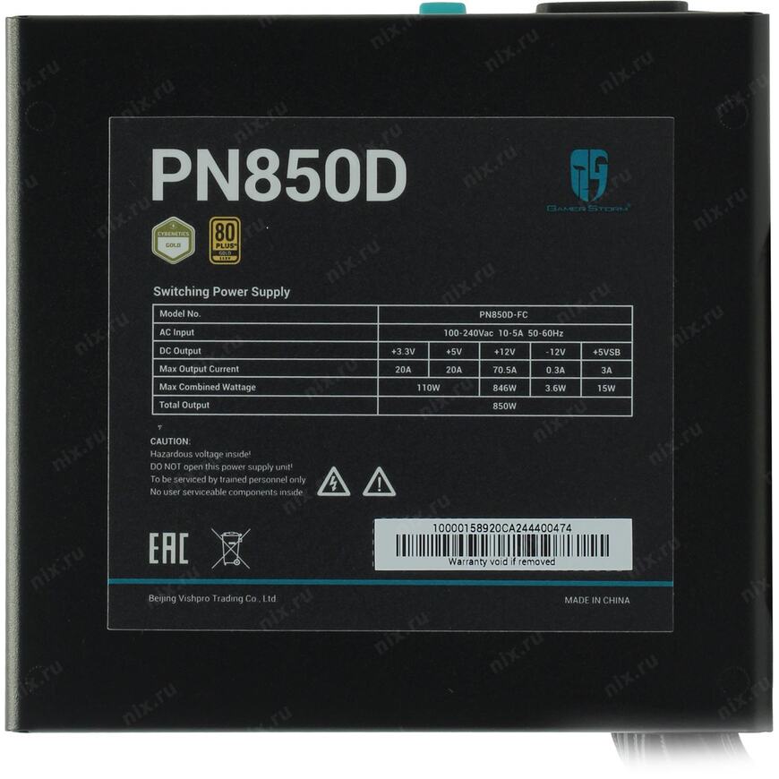 +3.3V - 20 А, +5V - 20 А, +5Vsb - 3 А, +12V1 - 70.5 А, -12V - 0.3 А, Суммарно по линиям 12V -846 Вт