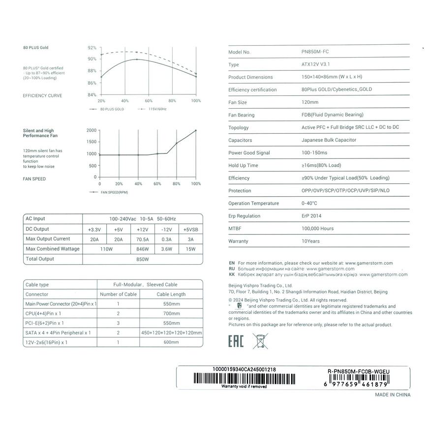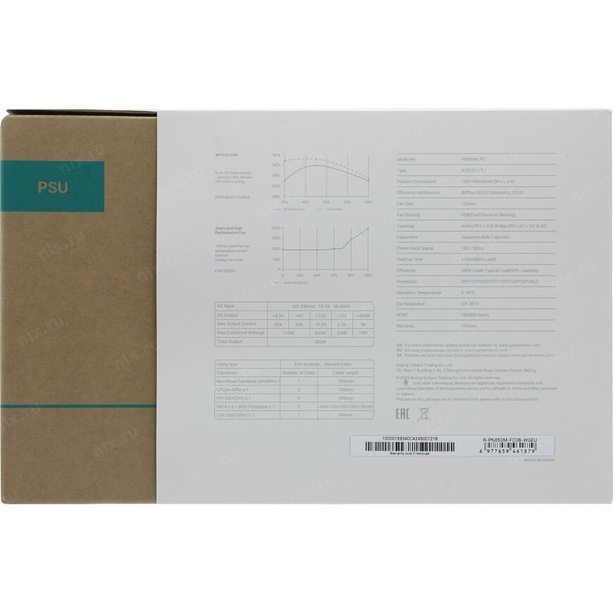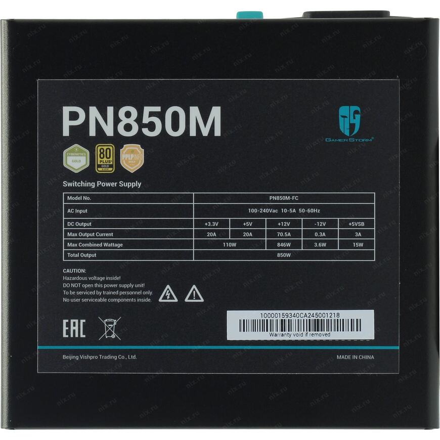 +3.3V - 20 А, +5V - 20 А, +5Vsb - 3 А, +12V1 - 70.5 А, -12V - 0.3 А, Суммарно по линиям 12V -846 Вт