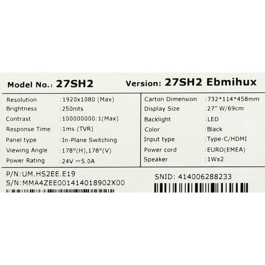 Монитор AOpen 27" 27SH2Ebmihux имеет возможность крепления на стену с помощью стандартного VESA крепления 75 х 75 мм, что позволяет экономить место на рабочем столе и создавать оптимальные условия для работы или игр.
