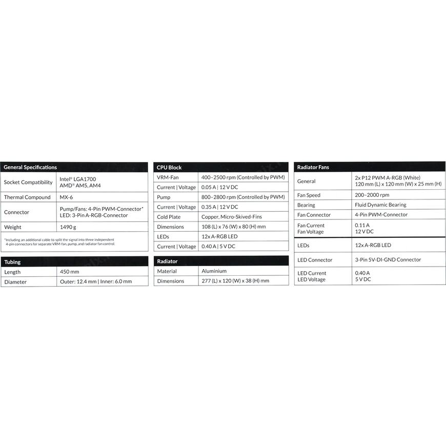 120 x 38 x 277 мм (только радиатор), 108.5 х 68.5 х 91 мм (водоблок)