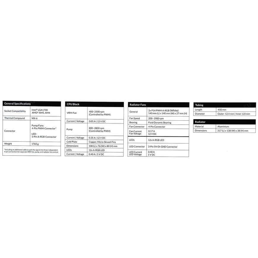138 x 38 x 317 мм (только радиатор), 108.5 х 68.5 х 91 мм (водоблок)