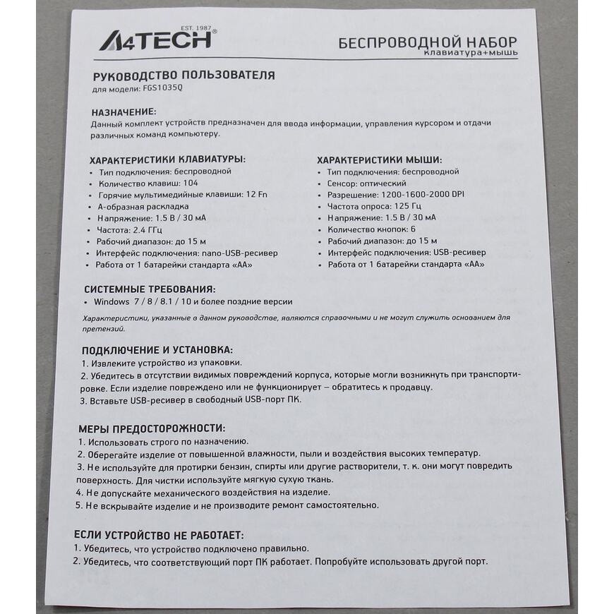 Комплект клавиатура FGKS10Q + мышь FG35S