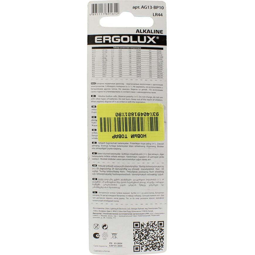 Батарейки LR44 Ergolux AG13-BP10 10 шт.