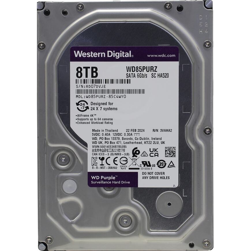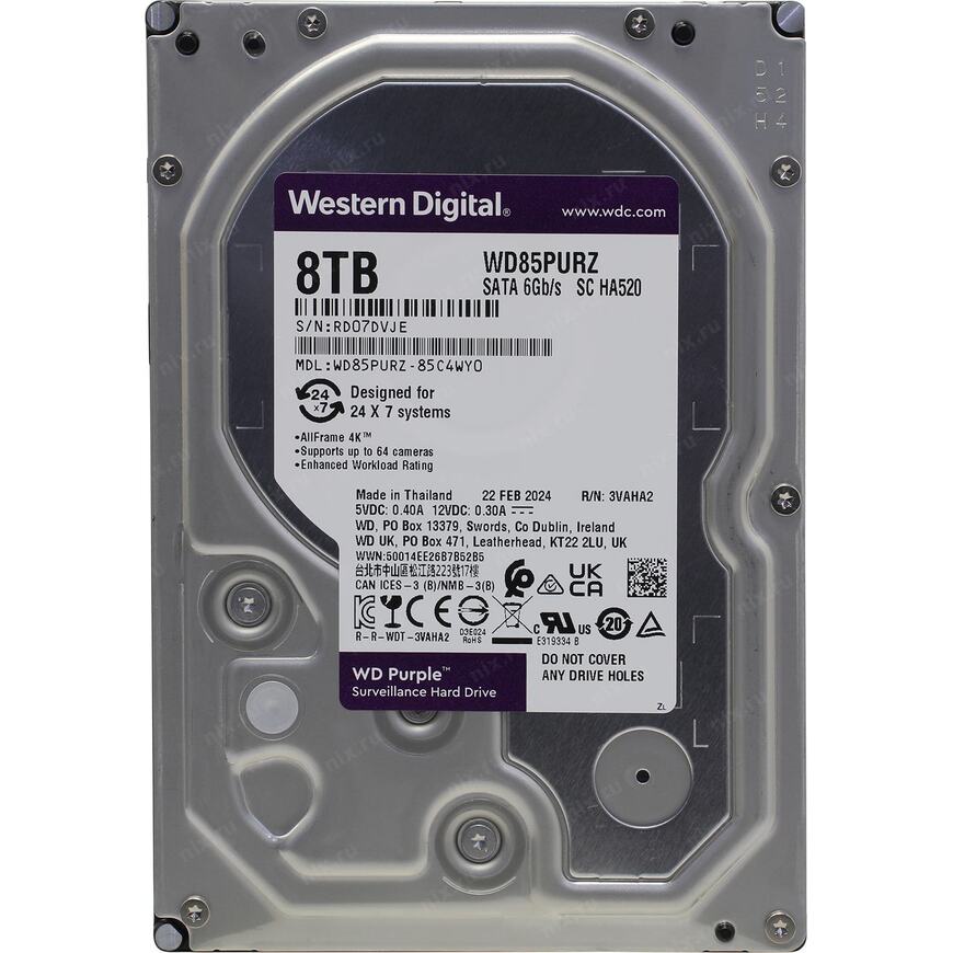 Жесткий диск для систем наблюдения; предназначен для круглосуточной работы в комплексах, содержащих до 64 камер высокой четкости и более 16 HDD