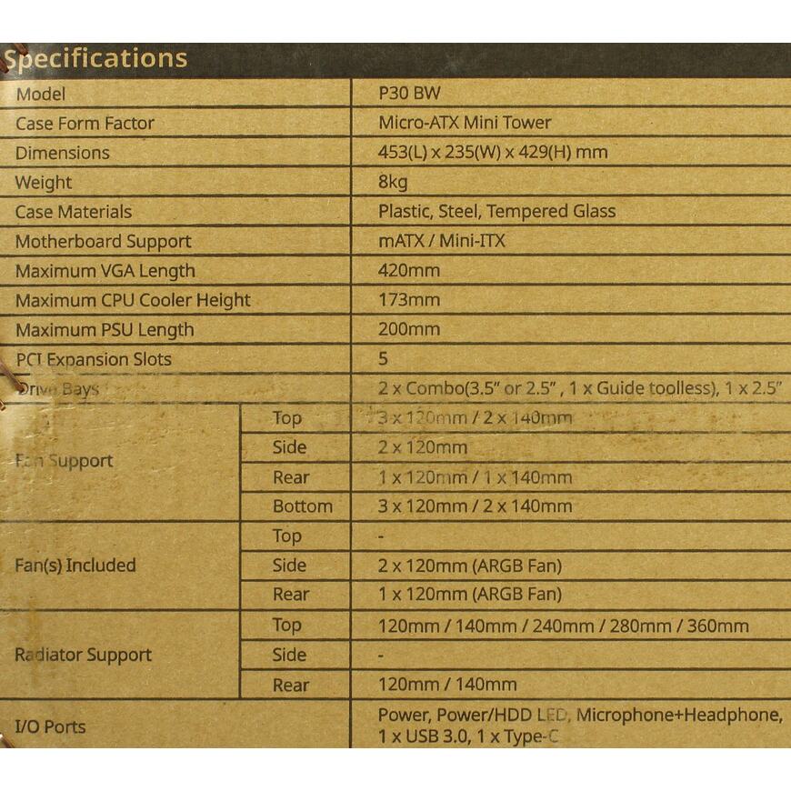 3 вентилятора: 120 x 120 мм (2 на боковой и 1 на задней панели)