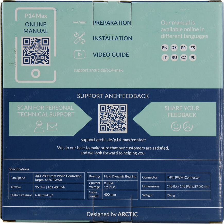 0 ~ 22.5 дБа. Полная остановка при сигнале PWM менее 3%