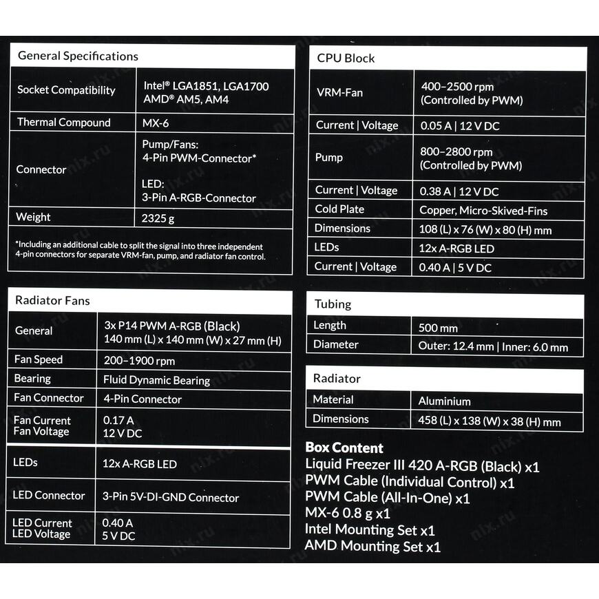 120 x 38 x 398 мм (только радиатор), 108.5 х 68.5 х 91 мм (водоблок)