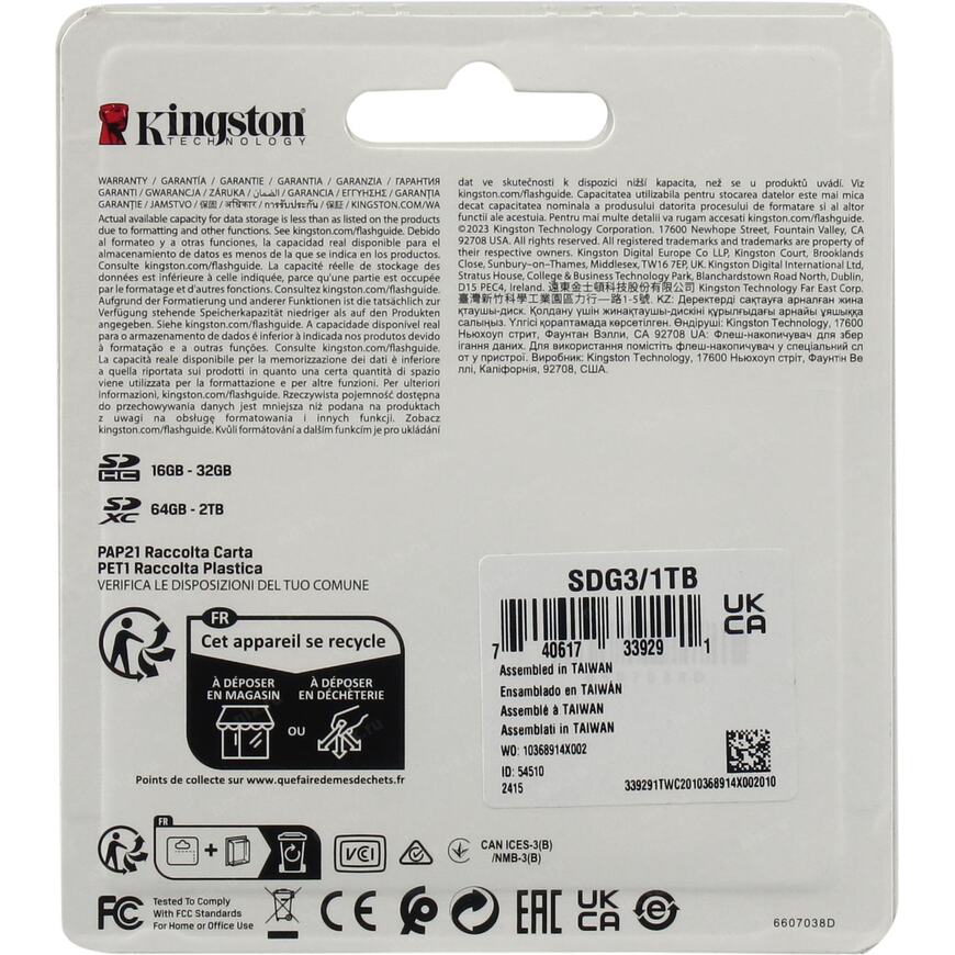 Карта памяти SDG3/1TB от компании Kingston