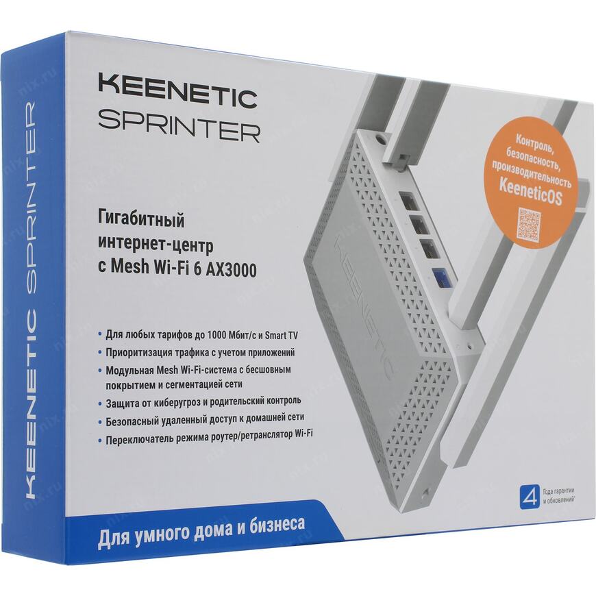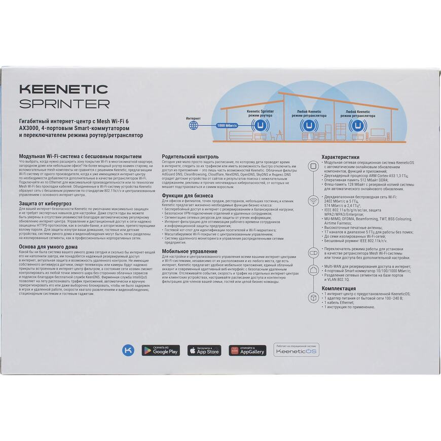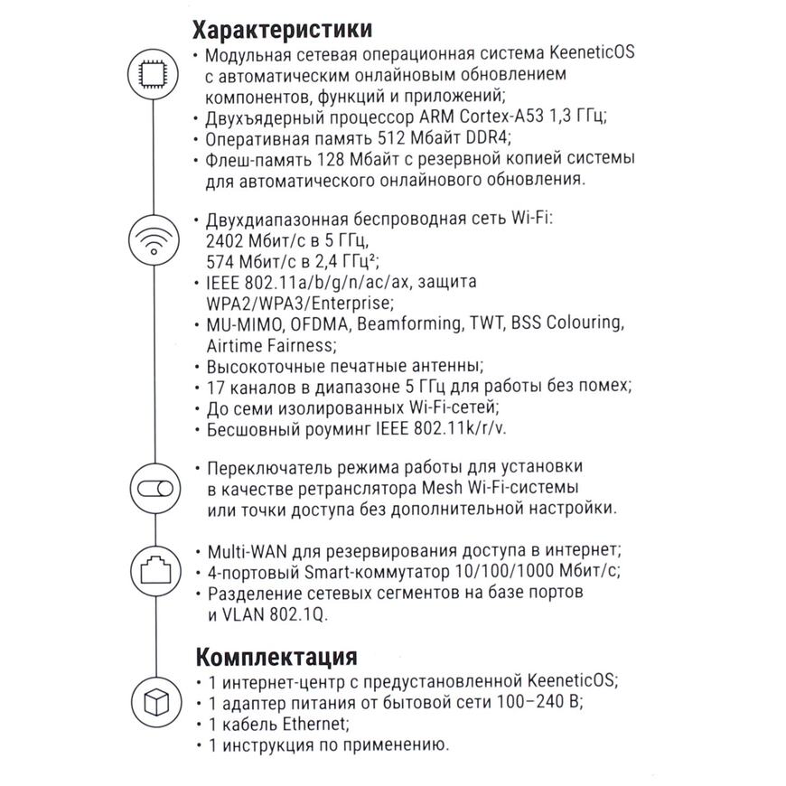 Гигабитный интернет-центр с Mesh WiFi 6 AX3000, 4 портовым Smart-коммутатором и переключателем режима роутер/ретранслятор