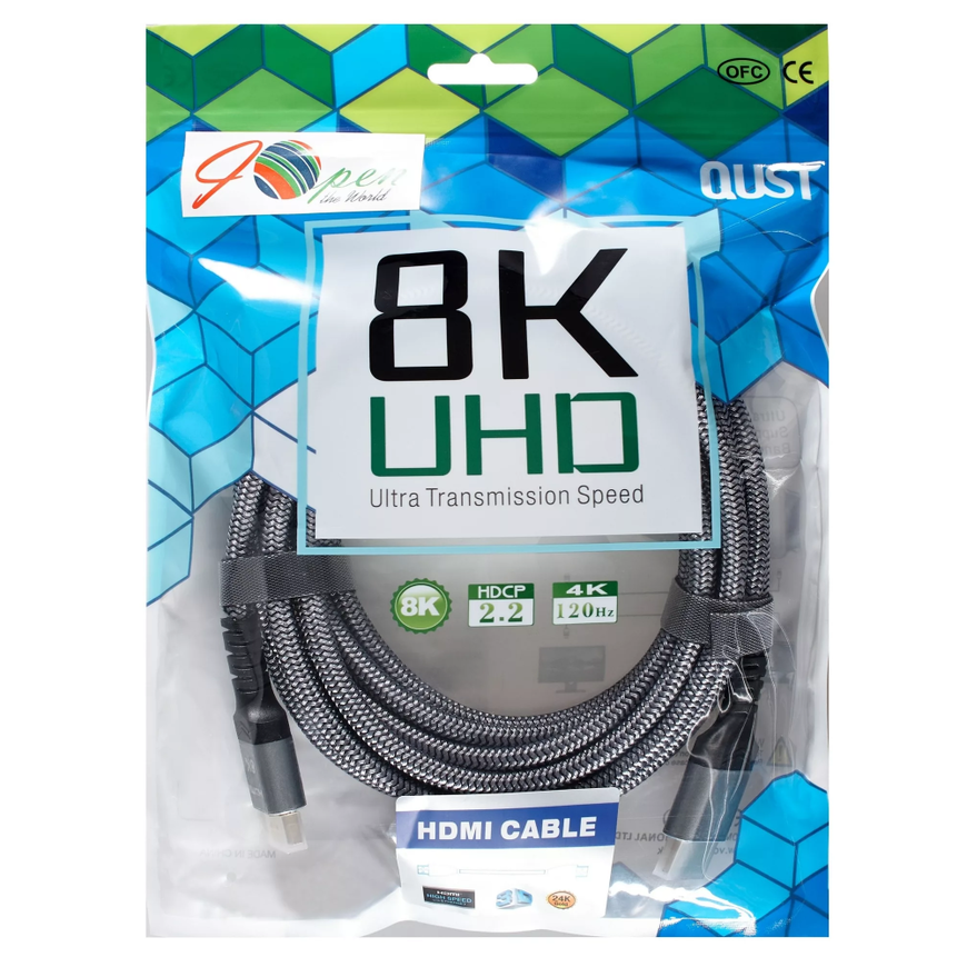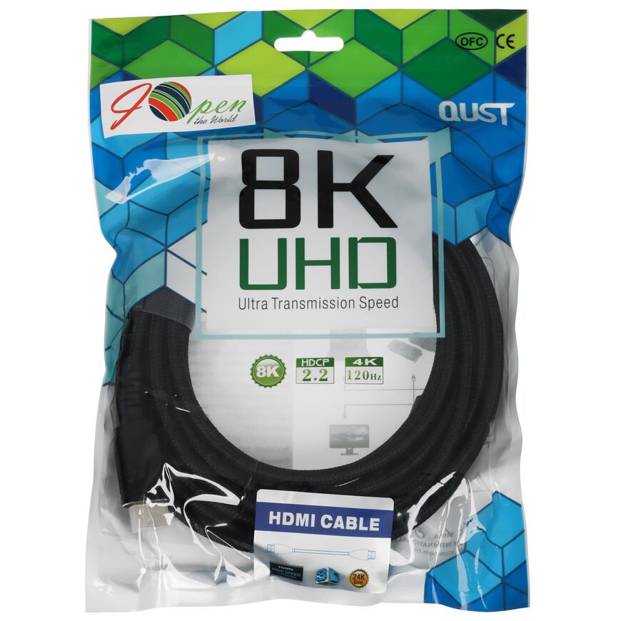 Кабель HDMI 19M/M,ver. 2.1 8KX60Hz (Econom) оплетка 5m iOpen