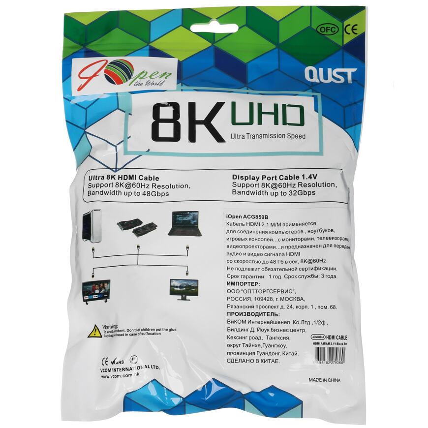 iOpen ACG859A-5.0 Кабель интерфейсный HDMI-HDMI 19M/M,ver. 2.1 8KX60Hz (Econom) оплетка 5m