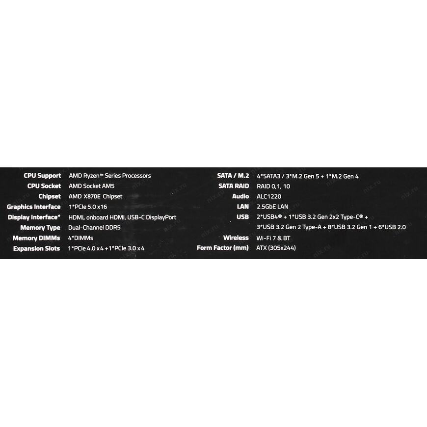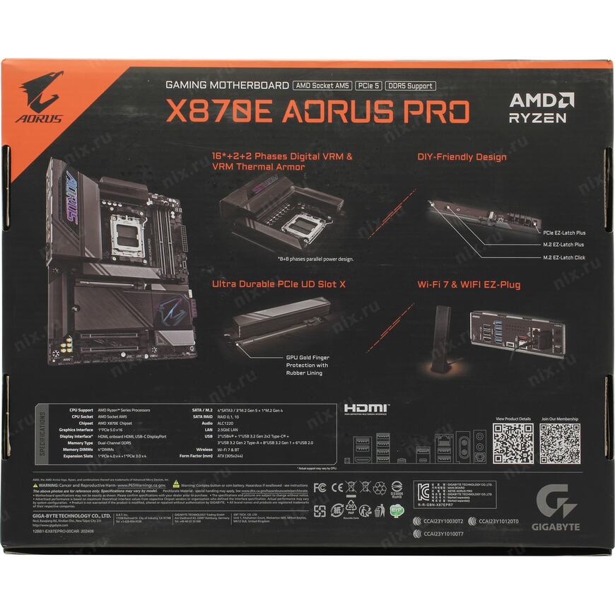 Материнская плата Socket AM5 GIGABYTE X870E AORUS PRO 4DDR5 ATX