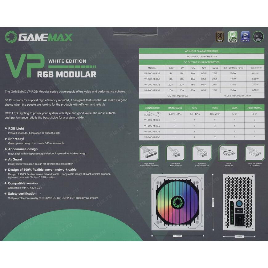 +3.3V - 20A, +5V - 20A, +12V - 48A, +5VSB - 2.5.A, -12V - 0.5A; Комбинированная нагрузка: +3.3V&+5V - 120 Вт
