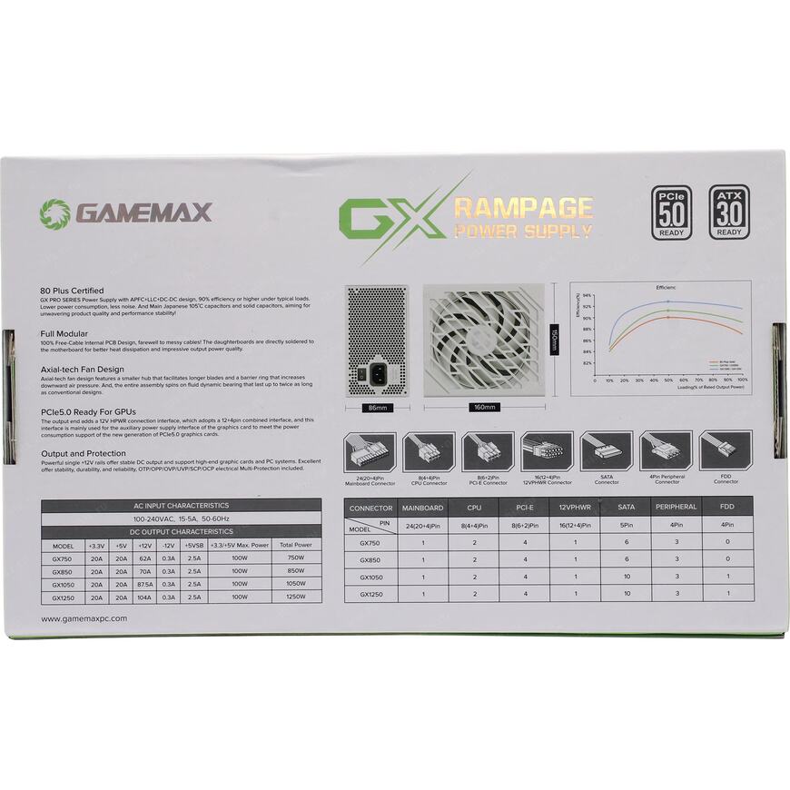 +3.3V - 20A, +5V - 20A, +12V - 62A, +5VSB - 2.5A, -12V - 0.3A