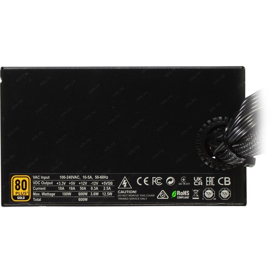 +3.3V - 18A, +5V - 18A, +12V - 50A, +5VSB - 2.5A, -12V - 0.5A