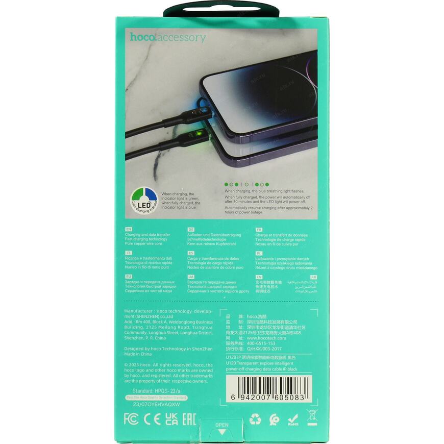 Кабель со светодиодной индикацией статуса зарядки. Питание отключается через 30 минут после достижения максимального уровня зарядки и возобновляется, если в течение 2 часов телефон не был отключен от кабеля.