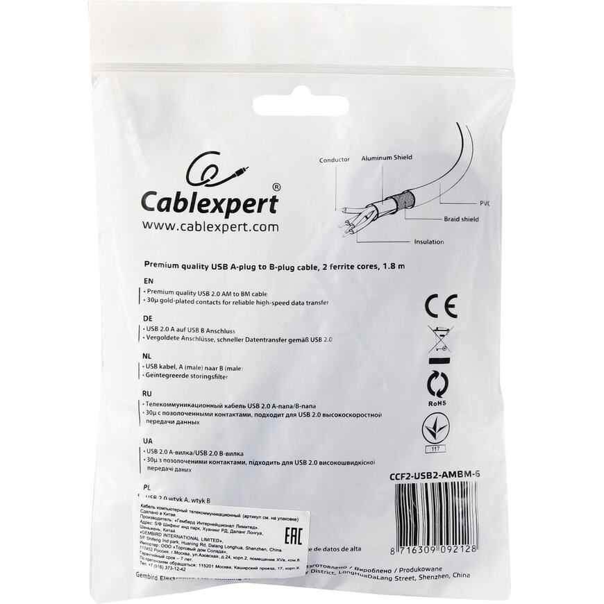 Кабель USB 2.0 A -> B