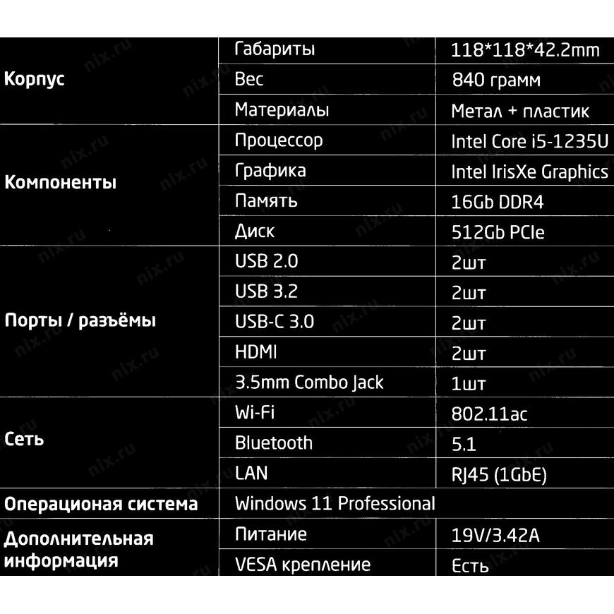 [мини компьютер] CBR MiniPC-DT002 (Intel i5-1235U /16Gb DDR4/512Gb SSD PCIe / W11Pro / 2 х USB 2.0, 2 х HDMI, 2 х USB 3.2, USB-C 3.0, USB-C 2.0, 3.5mm Combo Jack, RJ-45, VESA 75*75/100*100 )
