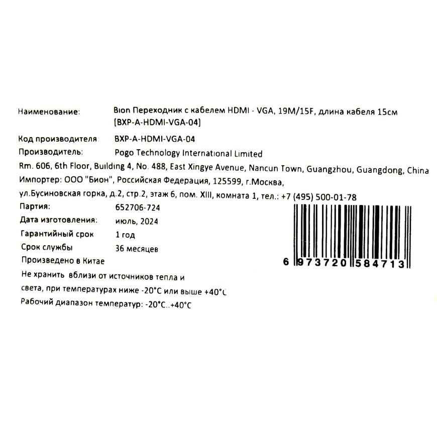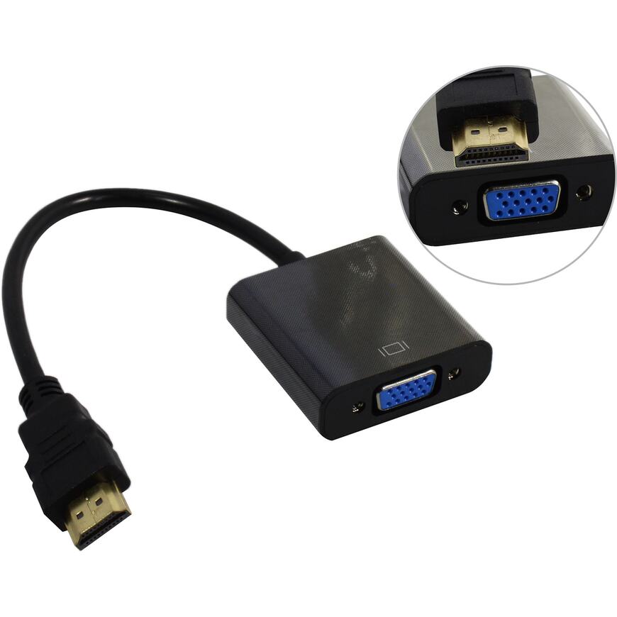 Адаптер на коротком кабеле для подключения монитора/телевизора/проектора со входом VGA к видеокарте с выходом HDMI. Не позволяет вывести аудиосигнал.