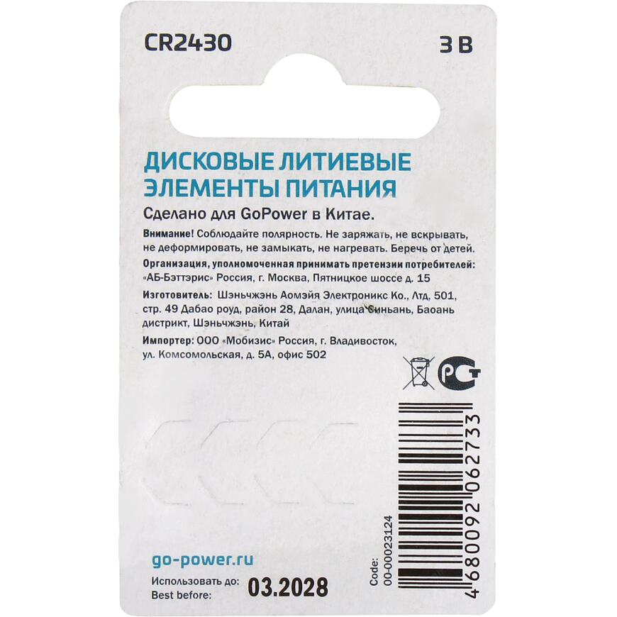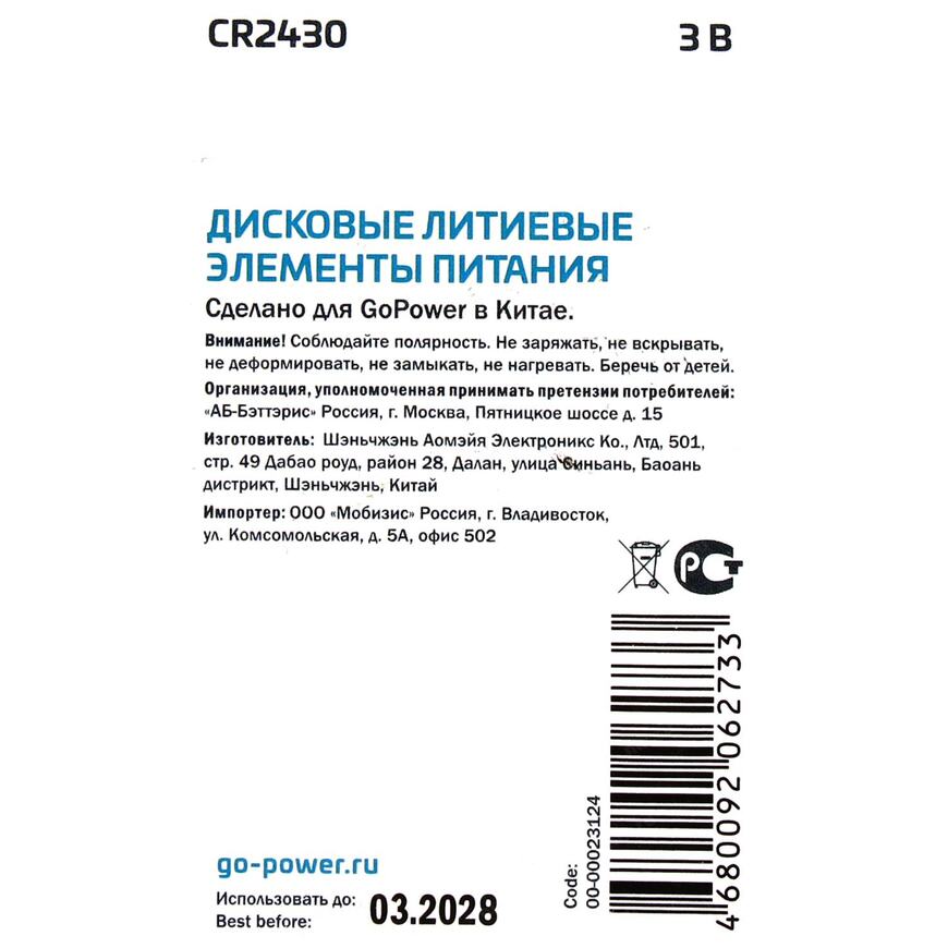CR2430 (DL2430, 5011LC, E-CR2430)