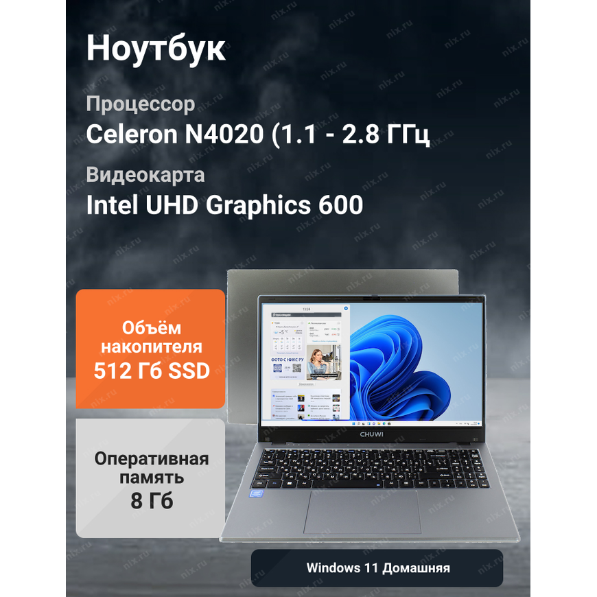 Intel Celeron N4020 (1.1 - 2.8 ГГц, 2 ядра, 6 Вт)