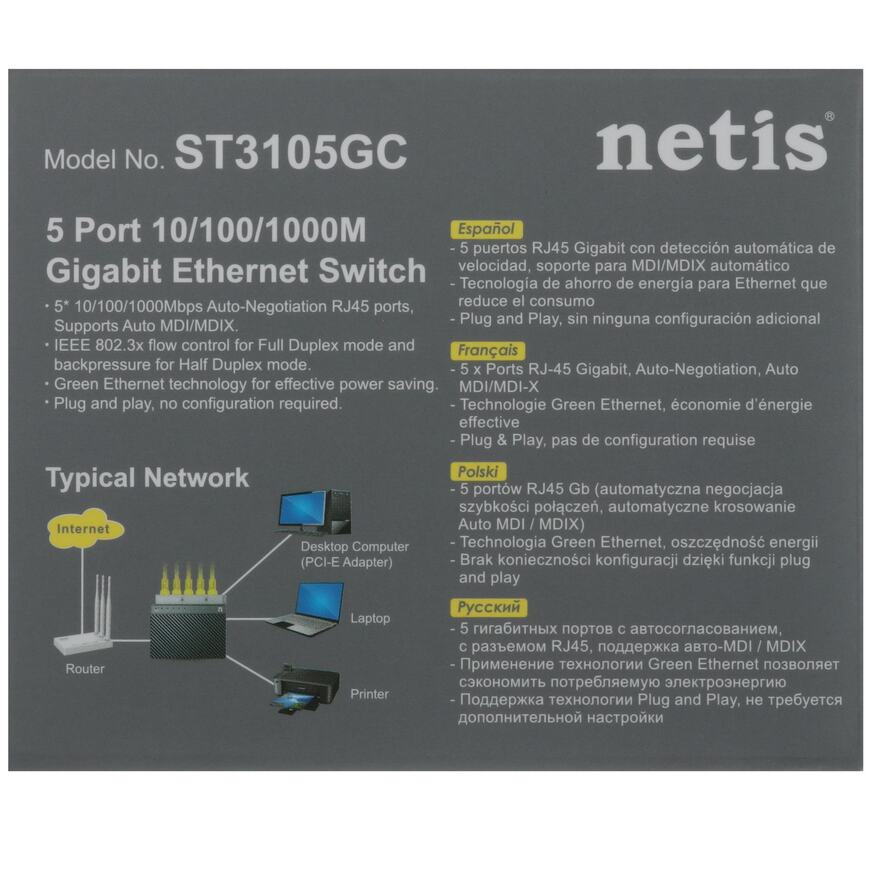 Netis ST3105GC отлично подойдет для создания домашней сети, подключения компьютеров, принтеров, IP-камер и других устройств. Его можно использовать как самостоятельное решение или в качестве дополнения к существующей сетевой инфраструктуре. Благодаря пяти гигабитным портам вы легко объедините несколько устройств в одну сеть, обеспечив между ними высокоскоростное соединение.