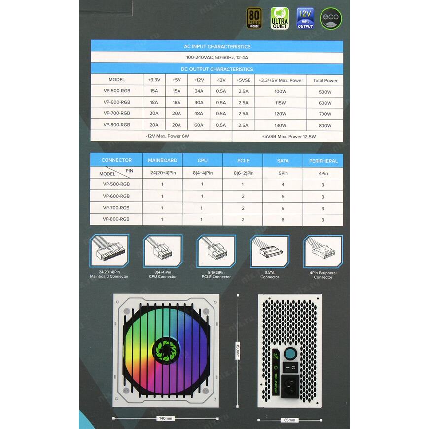 +3.3V - 20A, +5V - 20A, +12V - 60A, +5VSB - 2.5A, -12V - 0.5A; Комбинированная нагрузка: +3.3V&+5V - 130 Вт