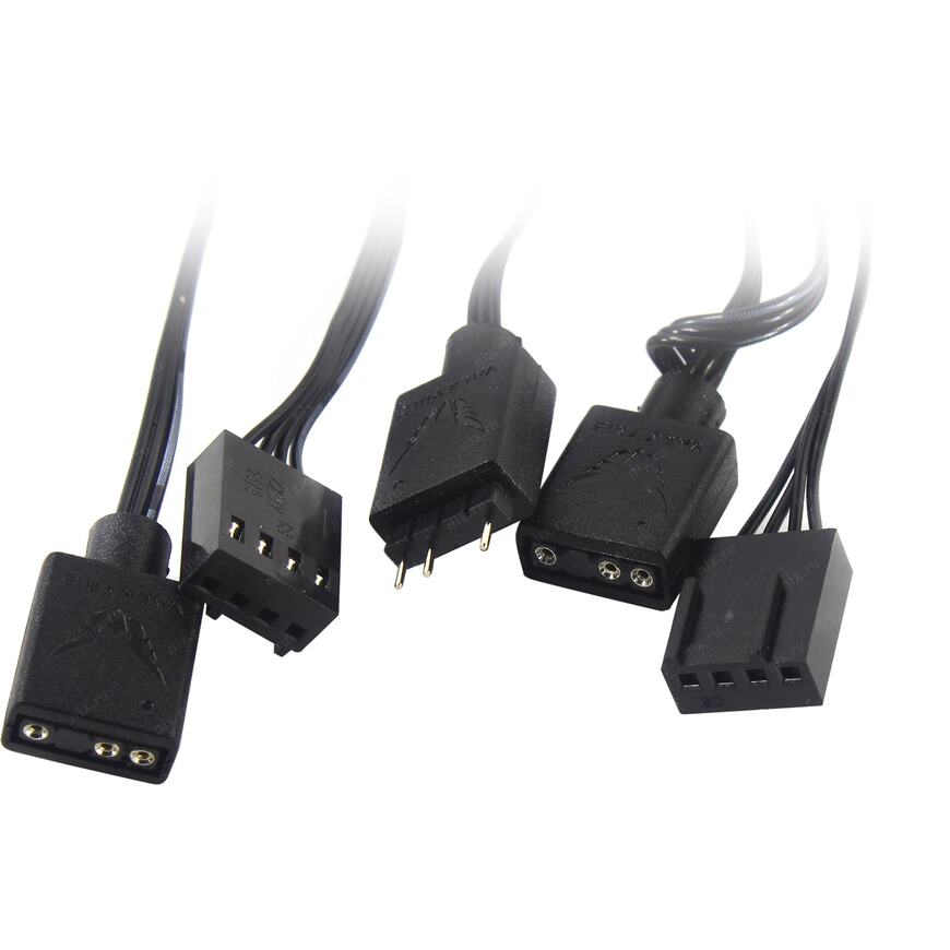 1x 4-pin коннектор МП, 1x 3-pin коннектор МП (4-pin для подключения вентилятора через разветвитель для подключения трех вентиляторов к одному разъему, 3-pin для подключения помпы)