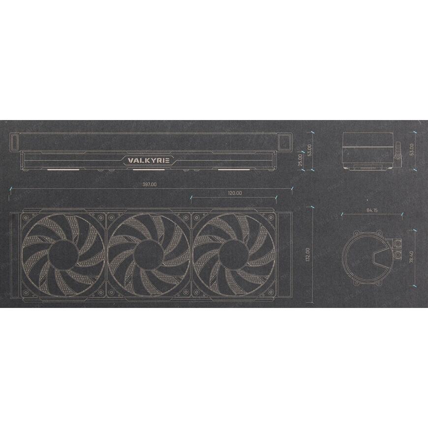 397 x 27 x 120 мм (только радиатор), 84.5 х 53 х 78.5 мм (водоблок)