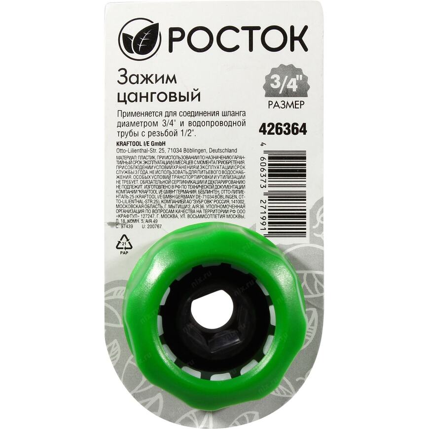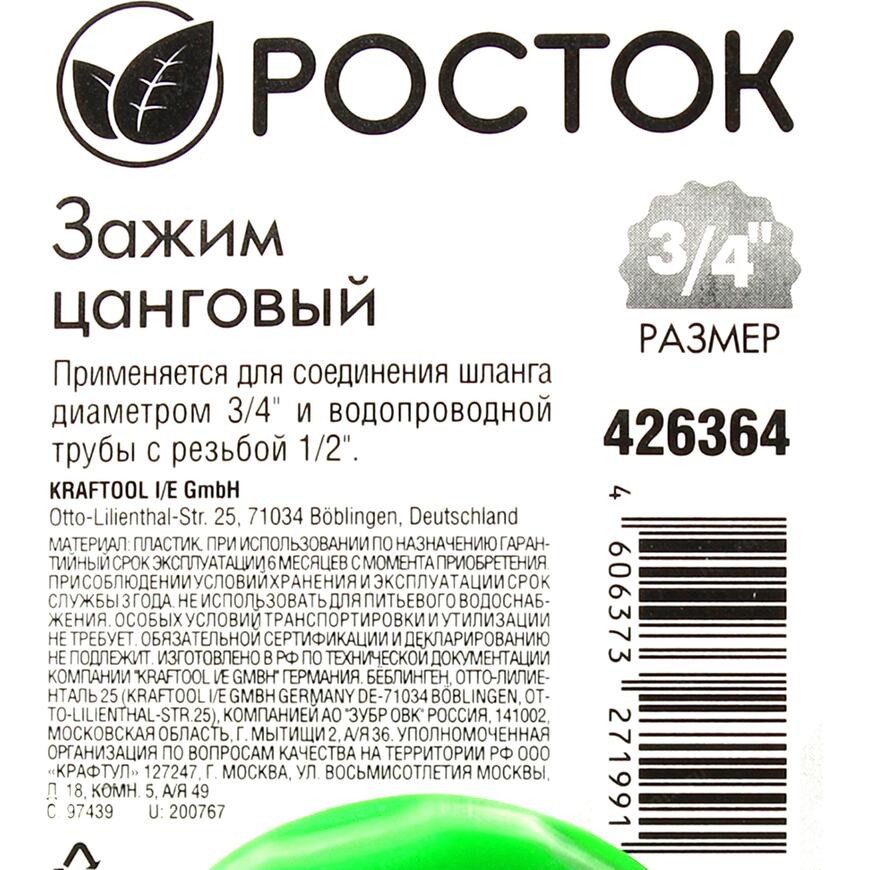 Штуцер с цанговым зажимом для подключения шланга диаметром 3/4" к водопроводу с резьбой 1/2"
