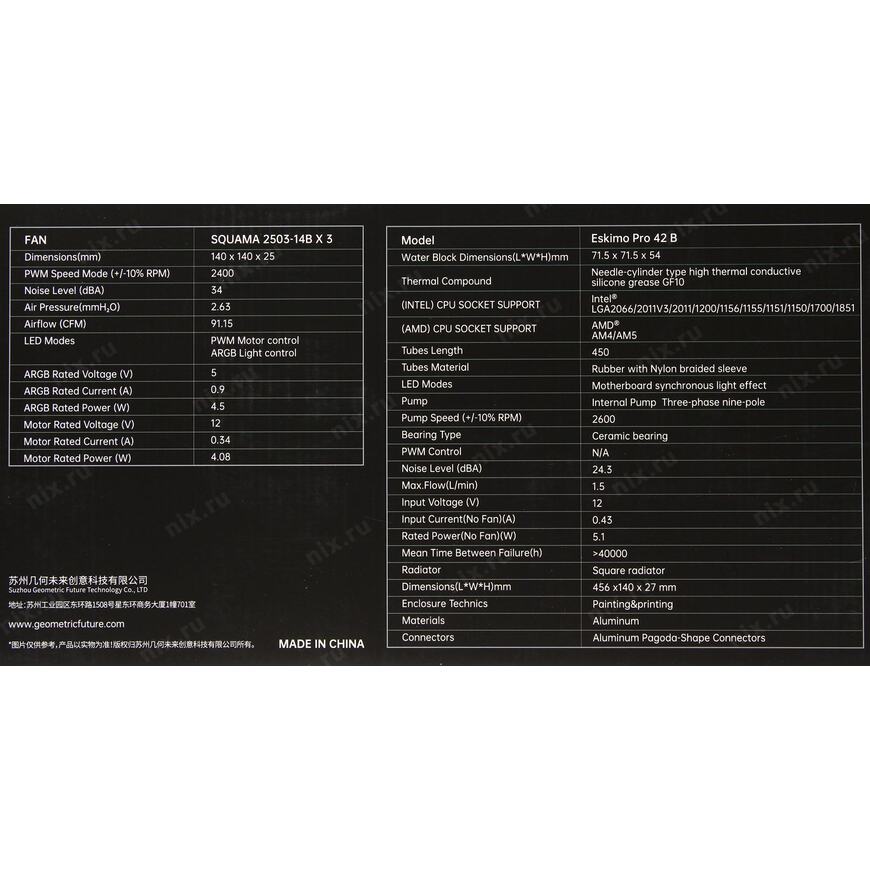 140 x 27 x 456 мм (только радиатор), 72 х 54 х 72 мм (водоблок)