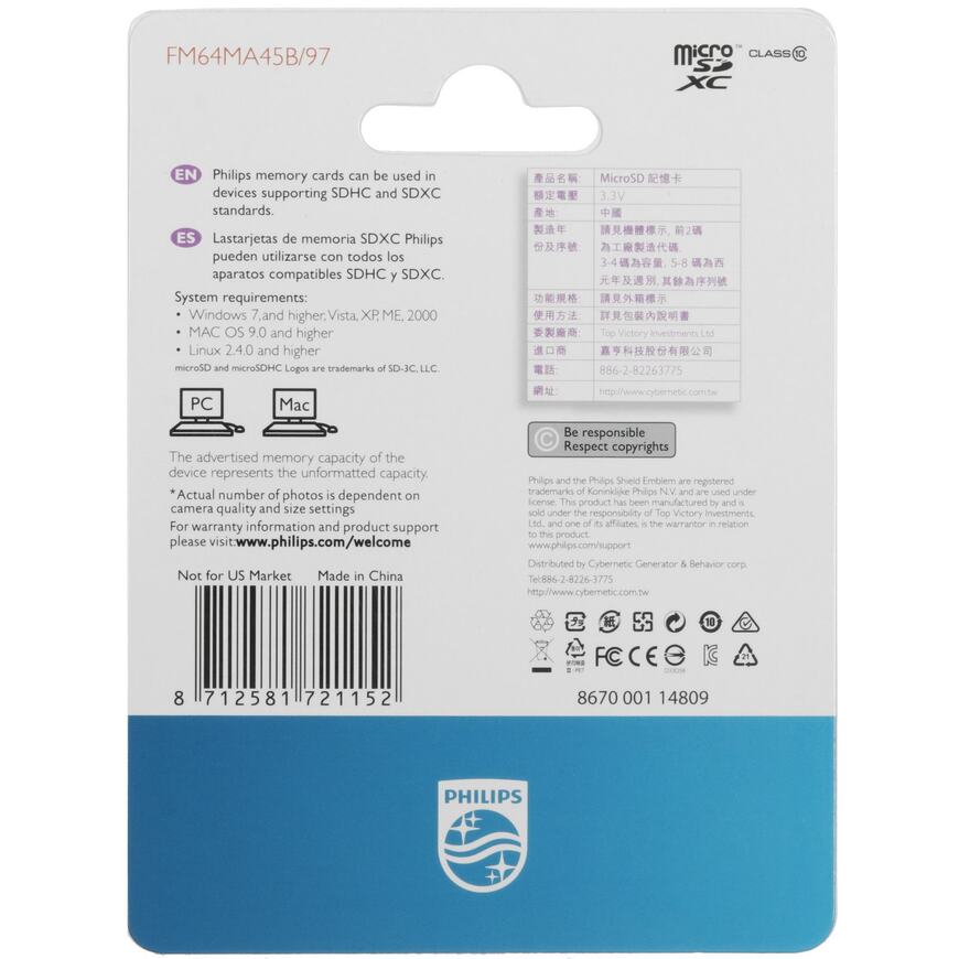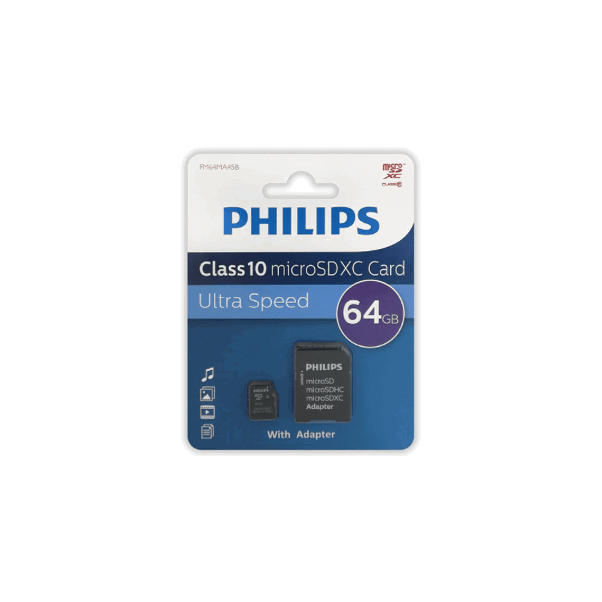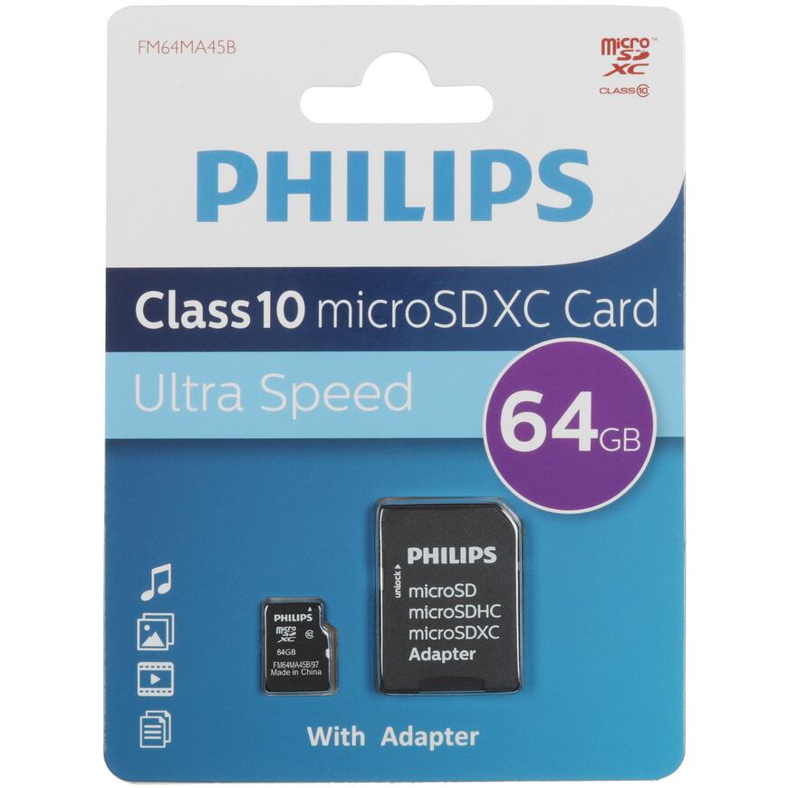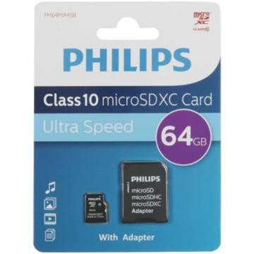 Флеш карта microSD 64GB PHILIPS microSDHC Class 10 (SD адаптер)
