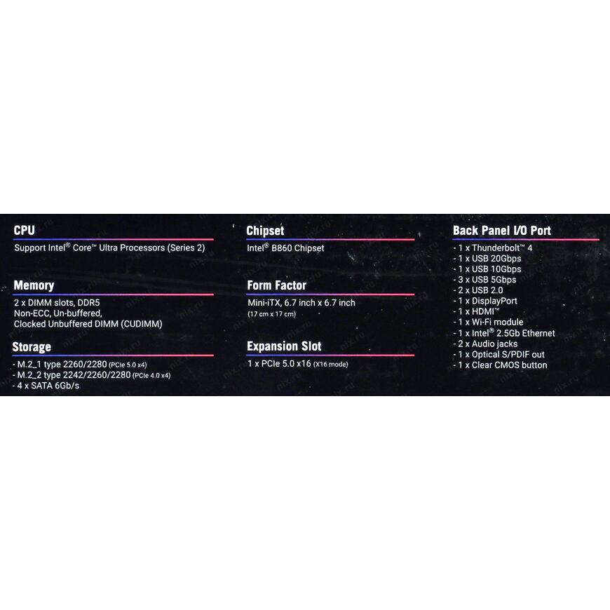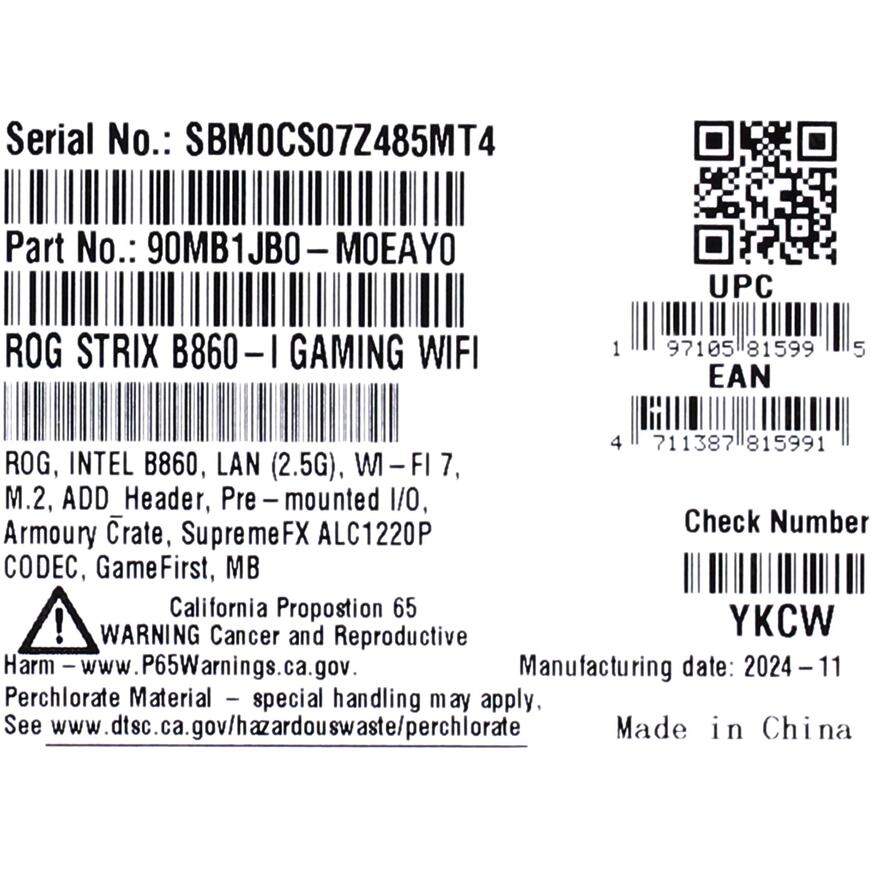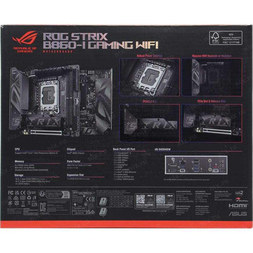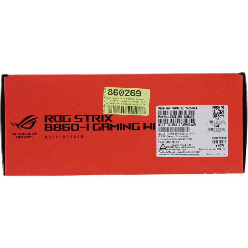 ASUS ROG STRIX B860-I GAMING WIFI, LGA1851, B860, 2*DDR5, 4*SATA, 2*M.2, 6*USB 3.2, Type-C, 1*PCIx16, DP+HDMI, mITX; 90MB1JB0-M0EAY0