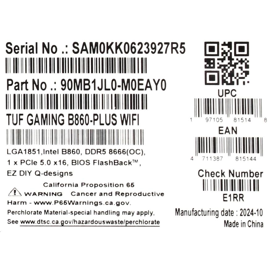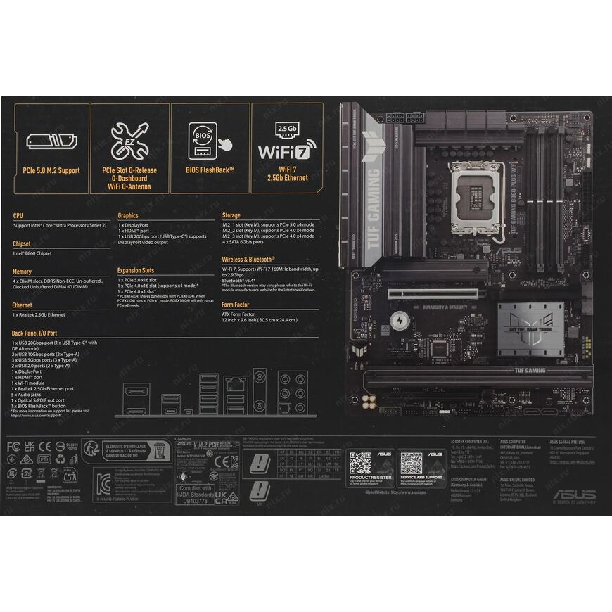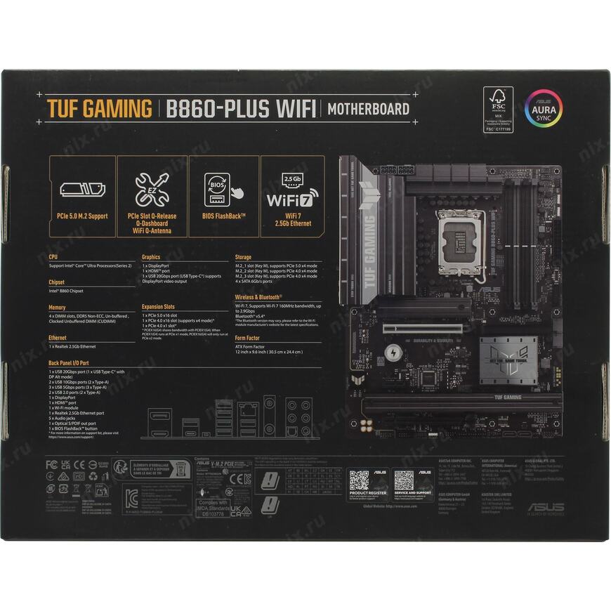 ASUS TUF GAMING B860-PLUS WIFI, LGA1851, B860, 4*DDR5, 4*SATA, 3*M.2, 5*USB 3.2, 2*USB 2.0, Type-C, 2*PCIx16, 1*PCIx1, DP+HDMI, ATX; 90MB1JL0-M0EAY0