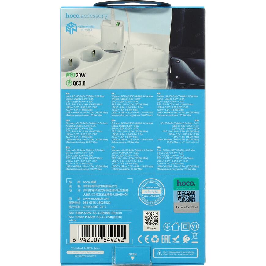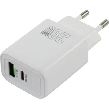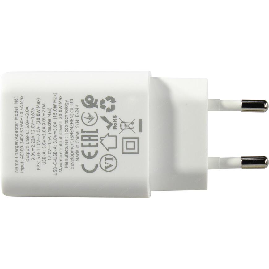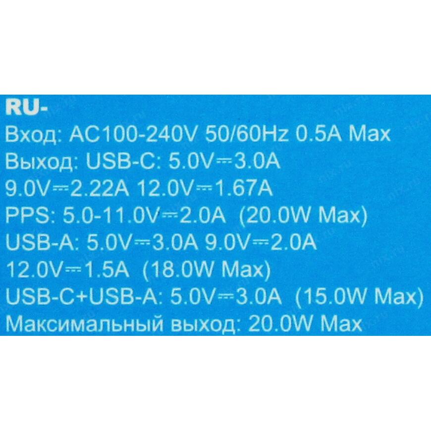 Зарядное устройство с портами USB Type C, USB Type A и поддержкой USB Power Delivery мощностью до 20 Вт. При подключении двух устройств одновременно, мощность составляет 15 Вт суммарно (5 В и 3 А)