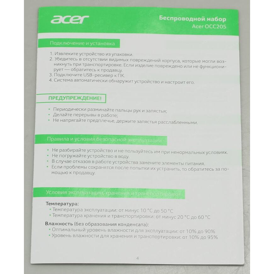 1 батарейка типа AA, 2 батарейки типа AAA, USB-приемник