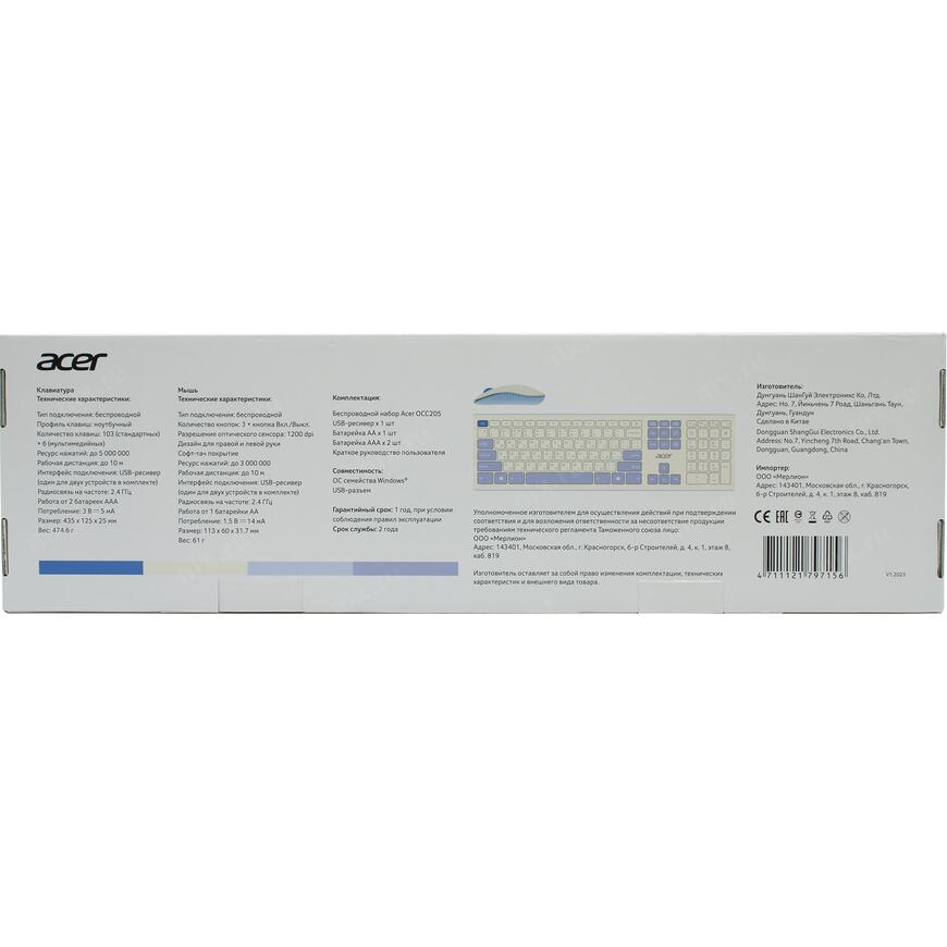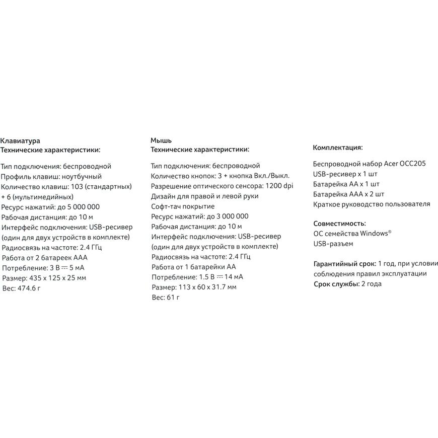 435 x 25 x 125 мм (клавиатура), 60 x 32 x 113 мм (мышь)