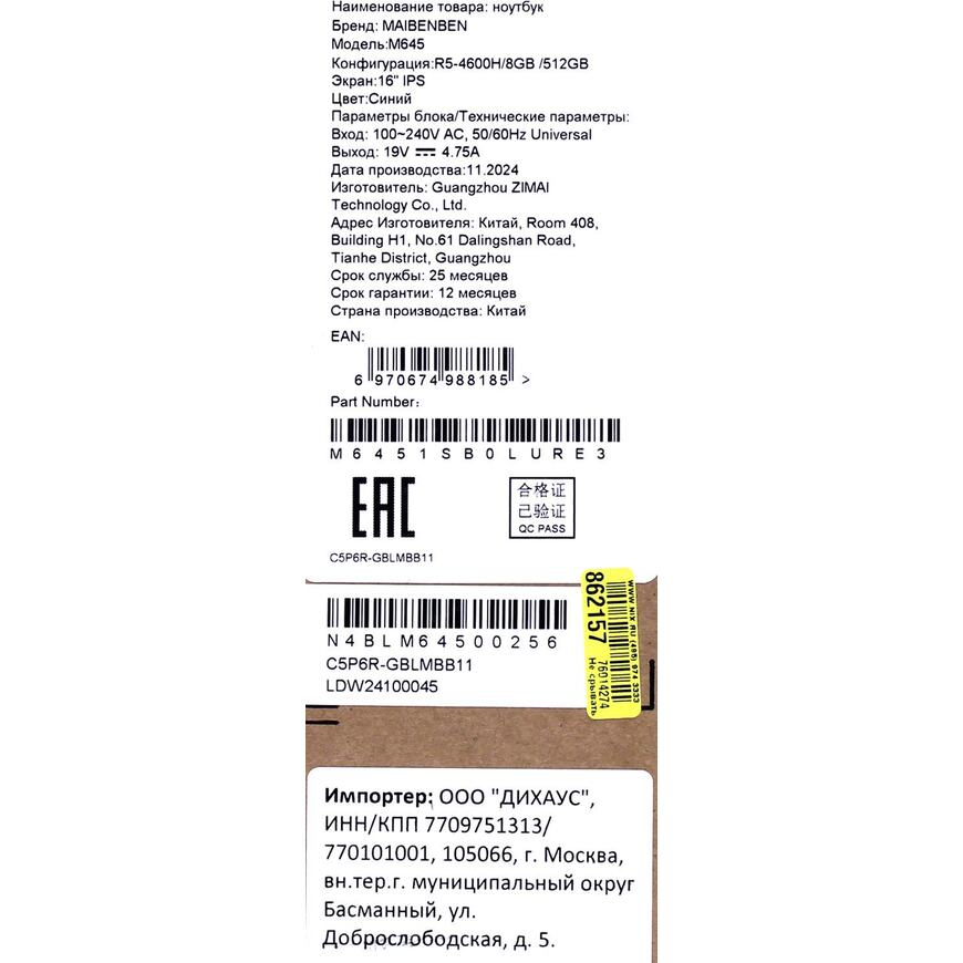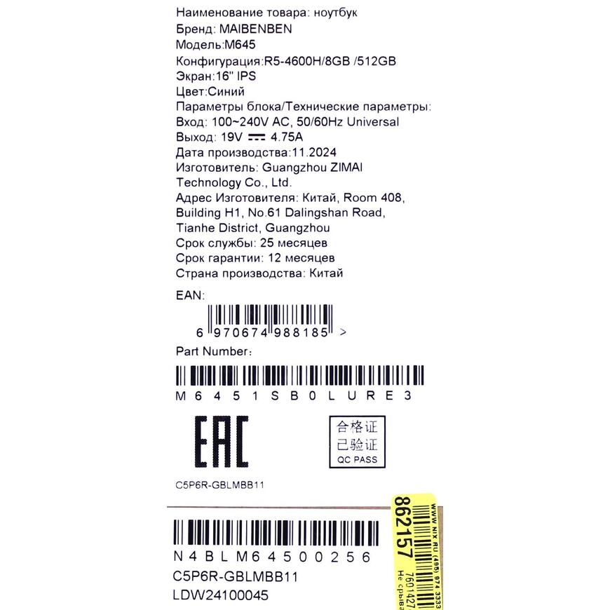 | Размеры упаковки (измерено в НИКСе) |