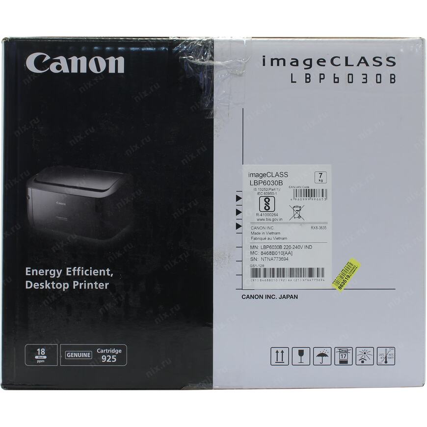 Canon Canon imageClass LBP6030B A4, принтер, лазерный, черно-белый, 18стр/мин, 600dpi, 400МГц, 32Мб, USB, (8468B010)