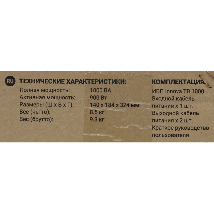 Innova TB 1000 - источник бесперебойного питания (ИБП) с двойным преобразованием входного напряжения (онлайн) станет надежным защитником вашего оборудования. Этот онлайн ИБП мощностью 1000 ВА/900 Вт разработан для обеспечения качественного электропитания чувствительных устройств, таких как персональные компьютеры, графические станции, мощные серверы, периферийная техника, сетевое оборудование, системы NAS и лабораторные приборы.