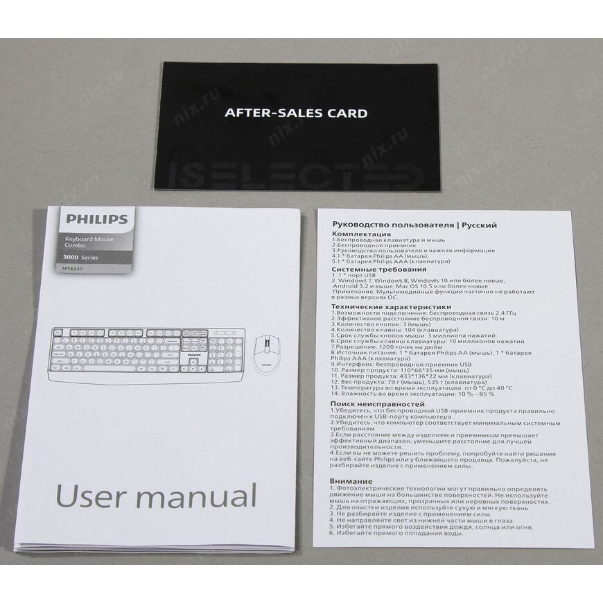 1 батарейка типа AA, 1 батарейка типа AAA, USB-приемник