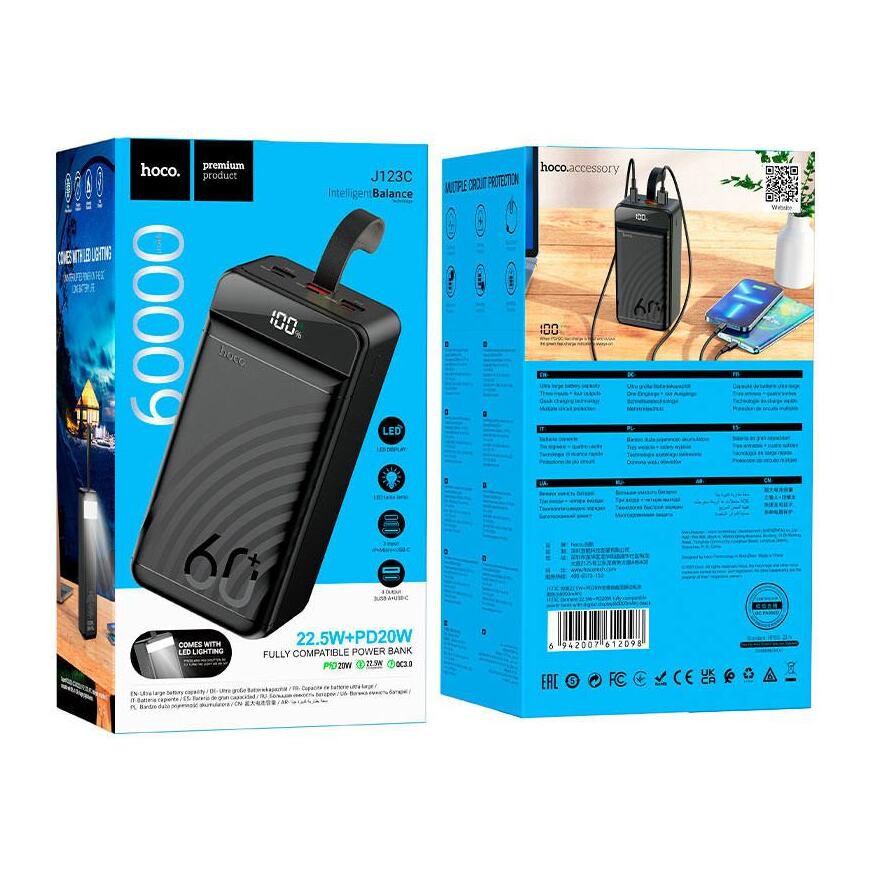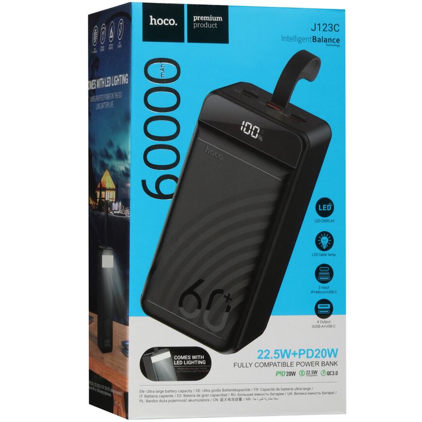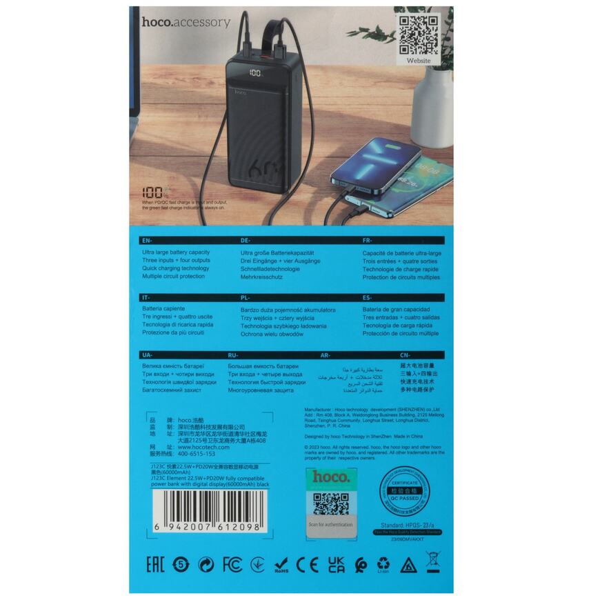 Аккумулятор внешний резервный HOCO J123C Element 22.5W+PD20W fully compatible power bank with digital display 60000mAh (чёрный)