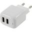 Универсальный адаптер, позволяющий осуществлять питание USB устройств от электросети. Подходит для зарядки двух мобильных телефонов, смартфонов, а также любых других устройств с возможностью зарядки по USB (5В / до 2.4А)