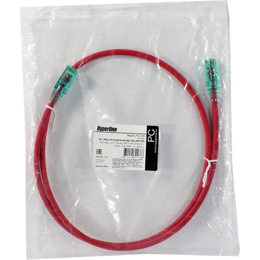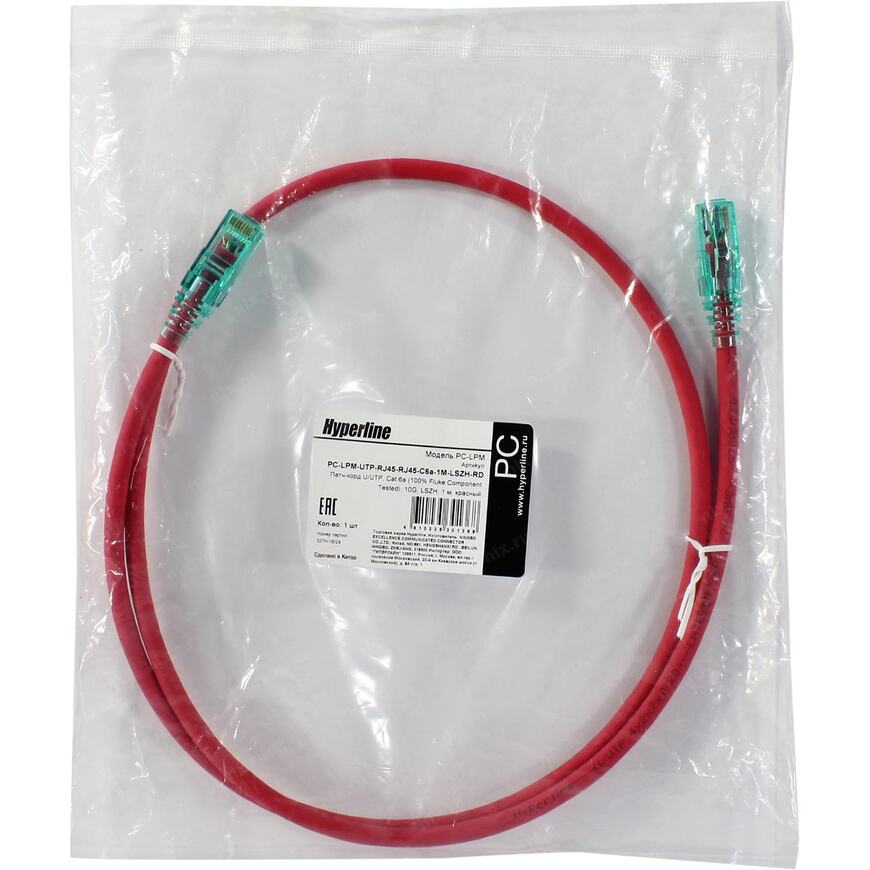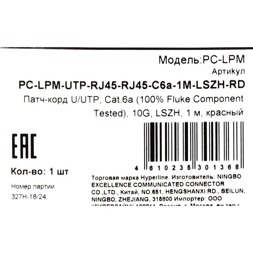Патч-корд Hyperline PC-LPM-UTP-RJ45-RJ45-C6a-1M-LSZH-RD