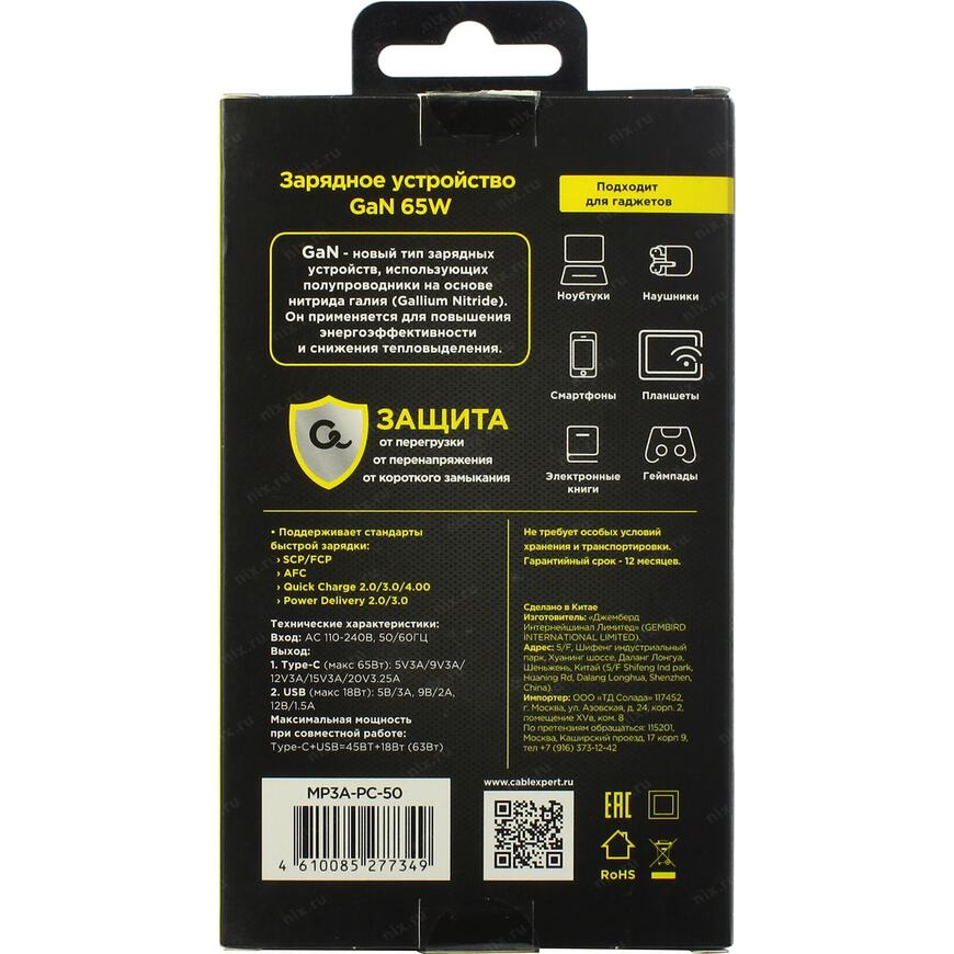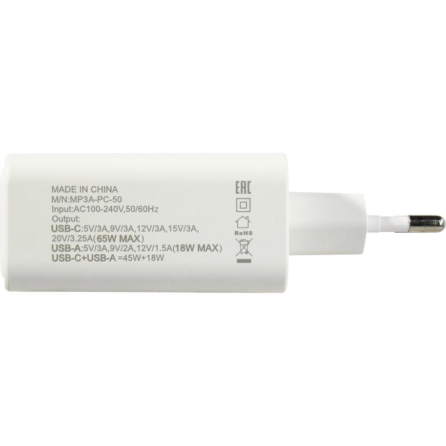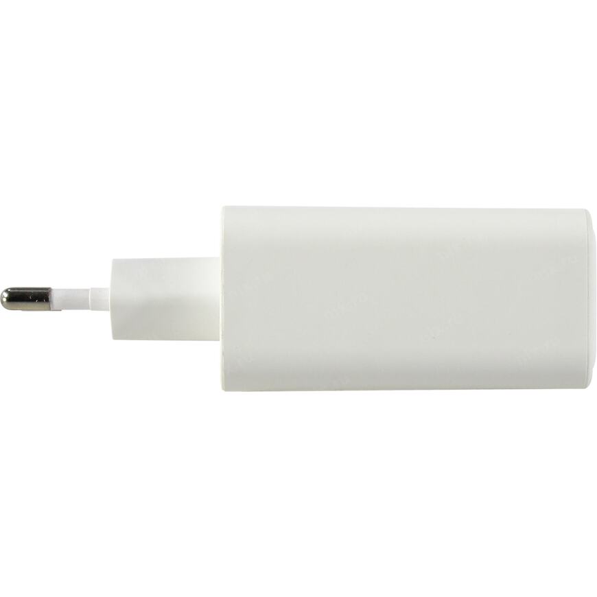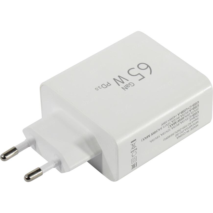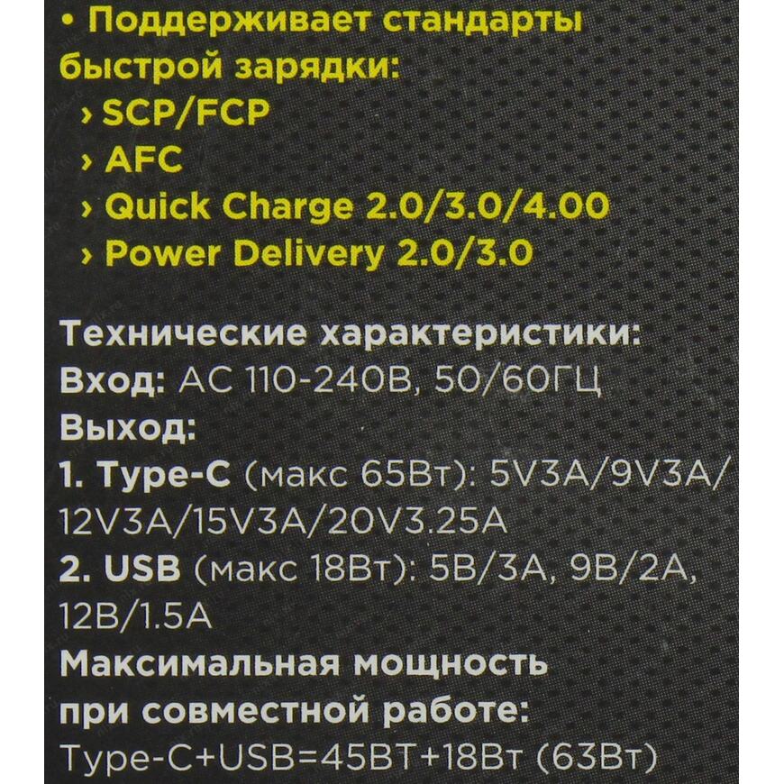 Зарядное устройств с портами USB Type C и USB Type A и поддержкой USB Power Delivery мощностью до 65 Вт. Благодаря применению GaN (нитрид галлия) удалось сделать устройство компактным и эффективным. При одновременном подключении двух портов мощность для Type C максимум 45 Вт, а для Type A максимум 18 Вт