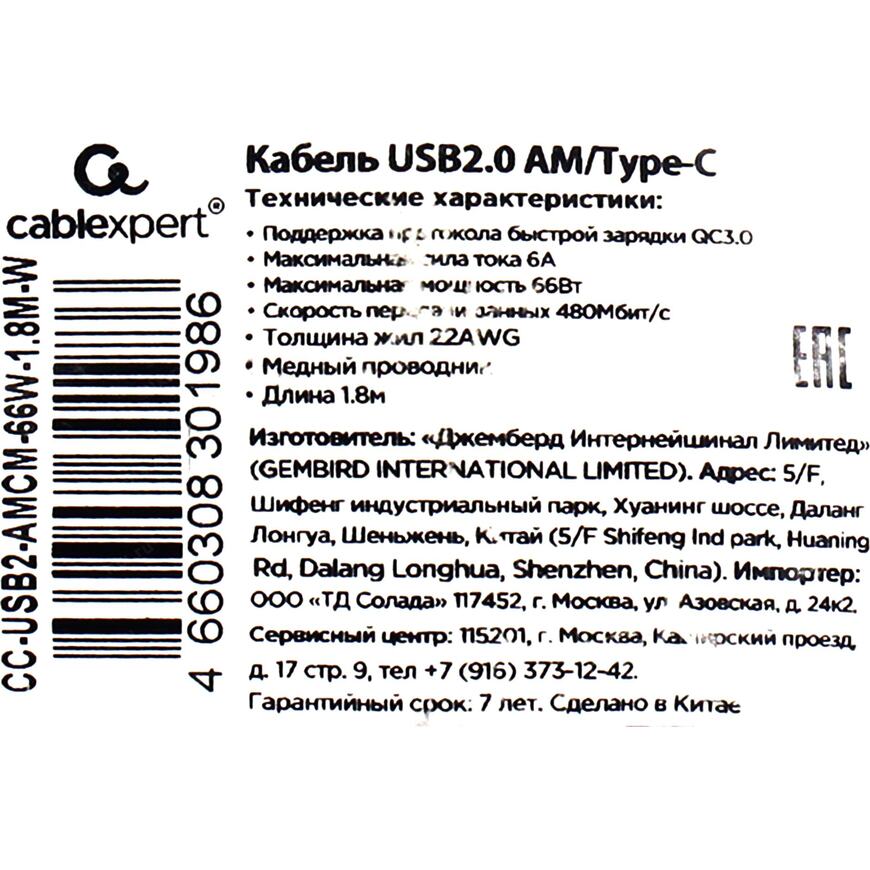 CC-USB2-AMCM-66W-1.8M-W