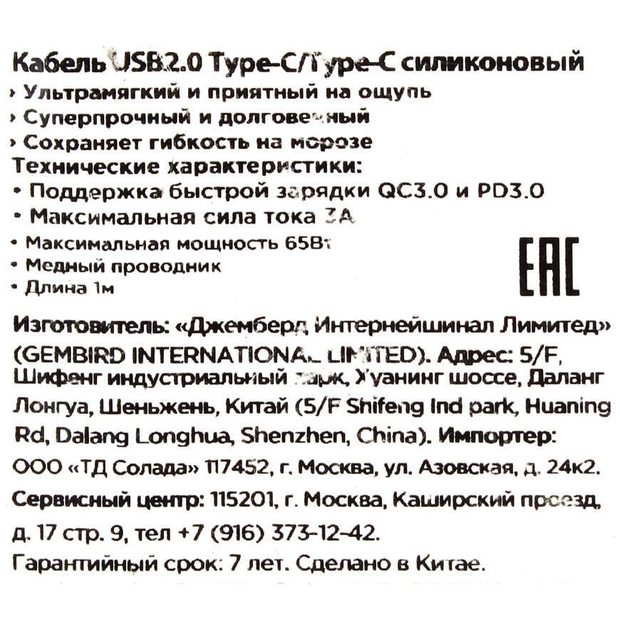 Кабель USB 2.0 type C <-> type C