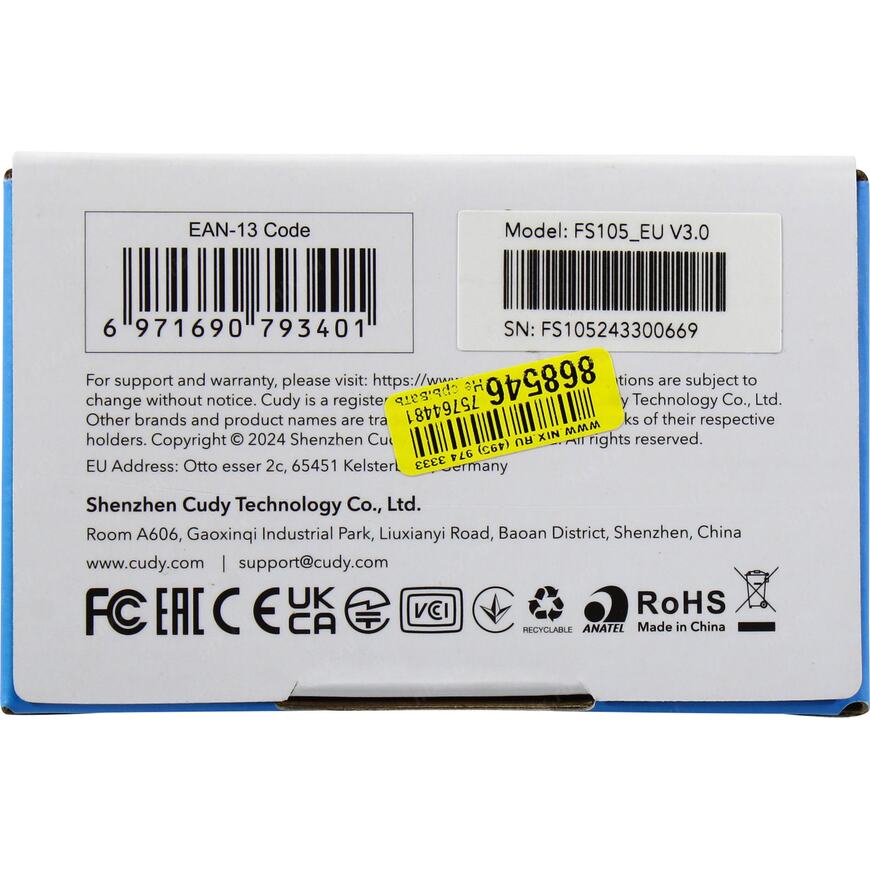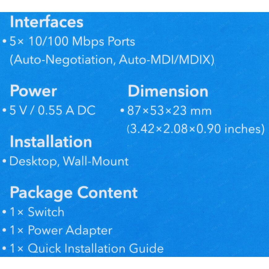 5 портов 10/100 Мбит/сек