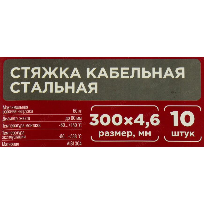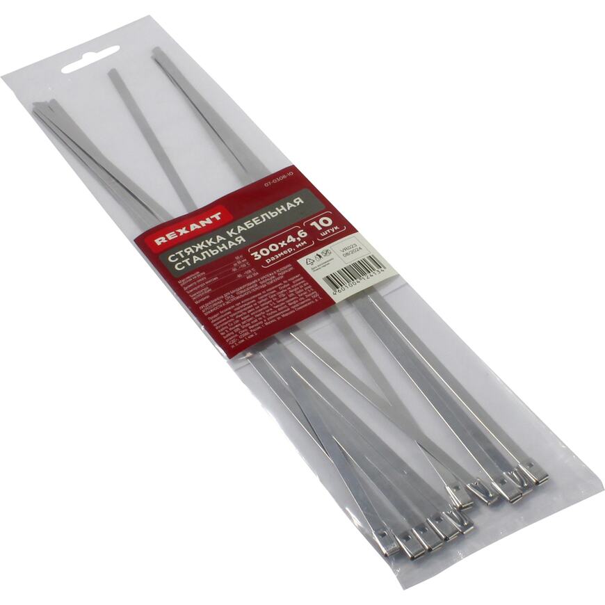 Стальной хомут REXANT - это надежный и универсальный крепеж, обеспечивающий крепкую фиксацию. Изделие предназначено для эксплуатации в агрессивных средах, при повышенной вибрации, влажности, радиации и экстремальных перепадах температур. Подходит для применения в разных отраслях. Стальной хомут является альтернативой металлической ленте. Изделие может без труда справиться с задачами, которые невозможно выполнить с помощью нейлоновой стяжки. Хомут изготовлен из нержавеющей стали AISI 304: обладает высокой прочностью, долговечностью, не подвержен коррозии, а также отличается огнестойкостью, благодаря чему подходит для монтажа ОКЛ (огнестойких кабельных линий). Изделие представляет собой неразъемный крепеж одноразового использования, что обеспечивает надежную и безопасную фиксацию без риска случайного отсоединения. Одноразовый зажим производится за счет шарикового механизма. В упаковке поставляются 10 стяжек размером 300x4,6 мм. Установка хомутов может выполняться с помощью специального монтажного инструмента (арт. 12-4522).